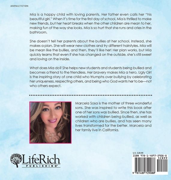 Mia is a happy child with loving parents. Her father even calls her "his beautiful girl." When it's time for the first day of school, Mia is thrilled to make new friends, but her heart breaks when the other children are mean to her, making fun of the way she looks. Mia is so hurt that she runs and cries in the bathroom. She doesn't tell her parents about the bullies at her school. Instead, she makes a plan. She will wear new clothes and try different hairstyles. Mia will be mean like the bullies, and then, they'll like her! Her plan works, but Mia quickly learns that even if she has changed on the outside, she's still sweet and loving on the inside. What does Mia do? She helps new students and students being bullied and becomes a friend to the friendless. Her bravery makes Mia a hero. Ugly Girl is the inspiring story of one child who triumphs over bullying by celebrating her uniqueness, respecting others, and being who God wants her to be-not who others expect.