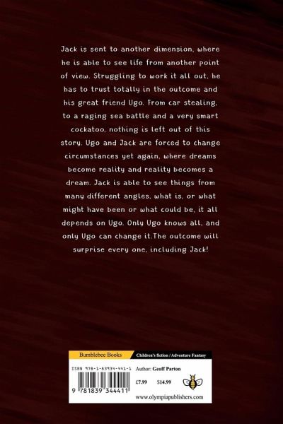 Jack is sent to another dimension, where he is able to see life from another point of view. Struggling to work it all out, he has to trust totally in the outcome and his great friend Ugo. From car stealing, to a raging sea battle and a very smart cockatoo, nothing is left out of this story. Ugo and Jack are forced to change circumstances yet again, where dreams become reality and reality becomes a dream. Jack is able to see things from many different angles, what is, or what might have been or what could be, it all depends on Ugo. Only Ugo knows all, and only Ugo can change it.The outcome will surprise every one, including Jack!