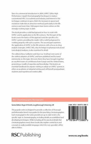 Since its commercial introduction in 2004, UHPLC (Ultra-High Performance Liquid Chromatography) has begun to replace conventional HPLC in academia and industry and interest in this technique continues to grow. Both the increases in speed and resolution make this an attractive method; particularly to the life sciences and more than 1500 papers have been written on this strongly-evolving topic to date. This book provides a solid background on how to work with UHPLC and its application to the life sciences. The first part of the book covers the basics of this approach and the specifics of a UHPLC system, providing the reader with a solid background to working properly with such a system. The second part examines the application of UHPLC to the life sciences, with a focus on drug analysis strategies. UHPLC-MS, a key technique in pharmaceutical and toxicological analyses, is also examined in detail. The editors (Davy Guillarme and Jean-Luc Veuthey) were some of the earliest adopters of UHPLC and have published and lectured extensively on this topic. Between them they have brought together an excellent team of contributors from Europe and the United States, presenting a wealth of expertise and knowledge. This book is an essential handbook for anyone wishing to adopt an UHPLC system in either an academic or industrial setting and will benefit postgraduate students and experienced workers alike.
