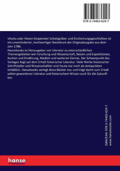 Uhuhu oder Hexen Gespenster Schatzgräber und Erscheinungsgeschichten ist ein unveränderter, hochwertiger Nachdruck der Originalausgabe aus dem Jahr 1786.