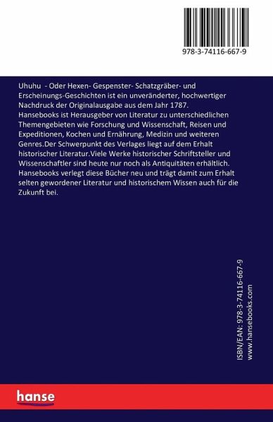 Uhuhu - Oder Hexen- Gespenster- Schatzgräber- und Erscheinungs-Geschichten ist ein unveränderter, hochwertiger Nachdruck der Originalausgabe aus dem Jahr 1787.