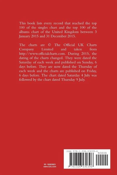 This book lists every record that reached the top 100 of the singles chart and the top 100 of the albums chart of the United Kingdom between 3 January 2015 and 31 December 2015. The charts are © The Official UK Charts Company Limited and taken from http://www.officialcharts.com. During 2015, the dating of the charts changed. They were dated the Saturday of each week and published on Sunday, 6 days before. They are now dated the Thursday of each week and the charts are published on Friday, 6 days before. The chart dated Saturday 4 July was followed by the chart dated Thursday 9 July.