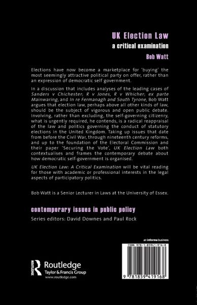 This book contains a critical analysis of the law and politics governing the conduct of statutory elections in the United Kingdom.