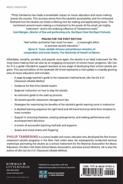 Affordable, versatile, portable, and popular once again, the ukulele is an ideal instrument for lifelong music making that can also be an engaging component of school music programs. Uke Can Do It! is a guide for teachers who may be at various stages of developing school ukulele programs. This second edition includes vital updates and a page-by-page teacher's guide to the classroom method book, Uke Can Do It 2!: Classroom Ukulele Method. The book includes: ·A guide for first-time ukulele buyers ·Beginner instruction in how to play the ukulele ·Extensive guide to the start-up process ·30 ukulele-specific classroom management tips ·Strategies for maximizing the benefits of the ukulele's gentle learning curve in instruction ·Technical sequence detailing right-hand and left-hand skills from simplest to most complex ·Guidance in choosing or creating arrangements and making performance and accompaniment decisions ·Support for use with special learners ·Scales and chord charts with fingering