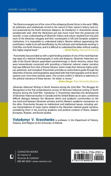 This study examines Ukrainian historical writing in the United States and Canada during the Cold War. The author describes the development of Ukrainian historical studies as an open yet sometimes difficult dialogue between Ukrainian ethnic and academic communities and between Ukrainian scholars and the Western academic mainstream.