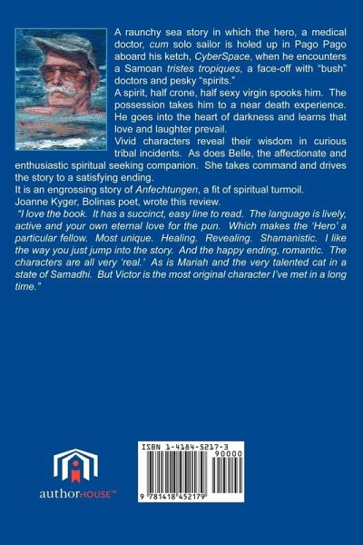 A raunchy sea story in which the hero, a medical doctor, cum solo sailor is holed up in Pago Pago aboard his ketch, CyberSpace, when he encounters a Samoan tristes tropiques, a face-off with "bush" doctors and pesky "spirits." A spirit, half crone, half sexy virgin spooks him. The possession takes him to a near death experience. He goes into the heart of darkness and learns that love and laughter prevail. Vivid characters reveal their wisdom in curious tribal incidents. As does Belle, the affectionate and enthusiastic spiritual seeking companion. She takes command and drives the story to a satisfying ending. It is an engrossing story of Anfechtungen, a fit of spiritual turmoil. Joanne Kyger, Bolinas poet, wrote this review. "I love the book. It has a succinct, easy line to read. The language is lively, active and your own eternal love for the pun. Which makes the 'Hero' a particular fellow. Most unique. Healing. Revealing. Shamanistic. I like the way you just jump into the story. And the happy ending, romantic. The characters are all very 'real.' As is Mariah and the very talented cat in a state of Samadhi. But Victor is the most original character I've met in a long time."