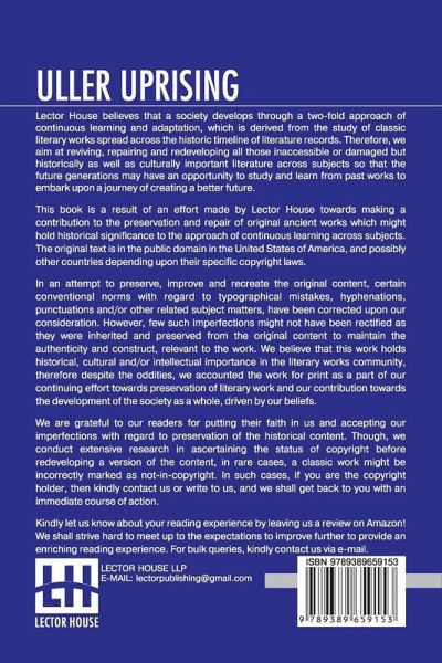 Uller Uprising: With Introductions By John F. Carr And John D. Clark This book is a result of an effort made by us towards making a contribution to the preservation and repair of original classic literature. In an attempt to preserve, improve and recreate the original content, we have worked towards: 1. Type-setting & Reformatting: The complete work has been re-designed via professional layout, formatting and type-setting tools to re-create the same edition with rich typography, graphics, high quality images, and table elements, giving our readers the feel of holding a 'fresh and newly' reprinted and/or revised edition, as opposed to other scanned & printed (Optical Character Recognition - OCR) reproductions. 2. Correction of imperfections: As the work was re-created from the scratch, therefore, it was vetted to rectify certain conventional norms with regard to typographical mistakes, hyphenations, punctuations, blurred images, missing content/pages, and/or other related subject matters, upon our consideration. Every attempt was made to rectify the imperfections related to omitted constructs in the original edition via other references. However, a few of such imperfections which could not be rectified due to intentional\unintentional omission of content in the original edition, were inherited and preserved from the original work to maintain the authenticity and construct, relevant to the work. We believe that this work holds historical, cultural and/or intellectual importance in the literary works community, therefore despite the oddities, we accounted the work for print as a part of our continuing effort towards preservation of literary work and our contribution towards the development of the society as a whole, driven by our beliefs. We are grateful to our readers for putting their faith in us and accepting our imperfections with regard to preservation of the historical content. HAPPY READING!