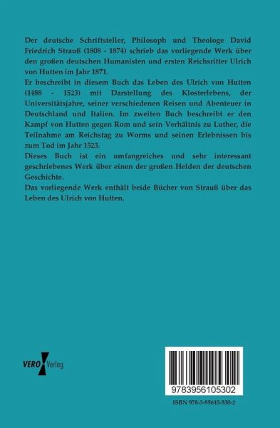 Das vorliegende Werk enthält beide Bücher von Strauß über das Leben des Ulrich von Hutten.