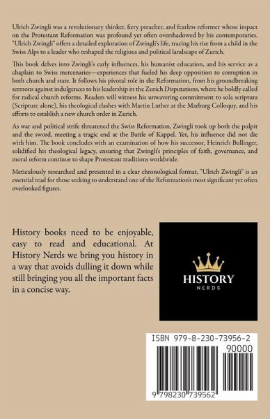 Ulrich Zwingli was a revolutionary thinker, fiery preacher, and fearless reformer whose impact on the Protestant Reformation was profound yet often overshadowed by his contemporaries. "Ulrich Zwingli" offers a detailed exploration of Zwingli's life, tracing his rise from a child in the Swiss Alps to a leader who reshaped the religious and political landscape of Zurich. This book delves into Zwingli's early influences, his humanist education, and his service as a chaplain to Swiss mercenaries-experiences that fueled his deep opposition to corruption in both church and state. It follows his pivotal role in the Reformation, from his groundbreaking sermons against indulgences to his leadership in the Zurich Disputations, where he boldly called for radical church reforms. Readers will witness his unwavering commitment to sola scriptura (Scripture alone), his theological clashes with Martin Luther at the Marburg Colloquy, and his efforts to establish a new church order in Zurich. As war and political strife threatened the Swiss Reformation, Zwingli took up both the pulpit and the sword, meeting a tragic end at the Battle of Kappel. Yet, his influence did not die with him. The book concludes with an examination of how his successor, Heinrich Bullinger, solidified his theological legacy, ensuring that Zwingli's principles of faith, governance, and moral reform continue to shape Protestant traditions worldwide. Meticulously researched and presented in a clear chronological format, "Ulrich Zwingli" is an essential read for those seeking to understand one of the Reformation's most significant yet often overlooked figures.