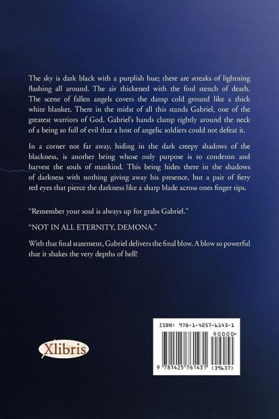 ULTIMATE EVIL By: Renee D. George The sky is dark black with a purplish hue; there are streaks of lightning flashing all around. The air thickened with the foul stench of death. The scene of fallen angels covers the damp cold ground like a thick white blanket. There in the midst of all this stands Gabriel, one of the greatest warriors of God. Gabriel's hands clamp tightly around the neck of a being so full of evil that a host of angelic soldiers could not defeat it. In a corner not far away, hiding in the dark creepy shadows of the blackness, is another being whose only purpose is to condemn and harvest the souls of mankind. This being hides there in the shadows of darkness with nothing giving away his presence, but a pair of fiery red eyes that pierce the darkness like a sharp blade across ones finger tips. "Remember your soul is always up for grabs Gabriel." "NOT IN ALL ETERNITY, DEMONA." With that final statement, Gabriel delivers the final blow. A blow so powerful that it shakes the very depths of hell!