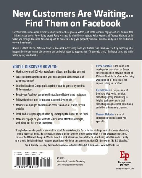 Today, only 5% of the 50 million active businesses on Facebook are tapping into the targeting capabilities and gold mine opportunity of their advertising programs. With more than 1.7 billion active users and growing, Perry Marshall, joined by co-authors Thomas Meloche and Keith Krance, walk entrepreneurs and businesses through the latest changes and enhancements to help them pinpoint their ideal audience, and ultimately gain a ten-fold return on their investment.