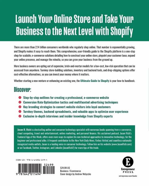 The ultimate guide to everything Shopify. Presented in a non-technical and easy-to-understand format, this comprehensive one-stop-shop is a complete guide to Shopify. Readers will learn exactly what's required to design, publish, promote, and manage a successful and professional-looking ecommerce website that gets results.
