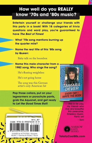 Unwind--no, REWIND--with this retro party in a book! Rock and pop music from the '70s and '80s still brings Joy and an immediate smile to people everywhere. It's the soundtrack to the lives of GenXers and takes you right back to where you were when you heard each song. This fun-filled music is a Call to the Heart and the inspiration for this book. In unique, new formats, the reader's knowledge of song titles, lyrics, and the artists who made them famous will be tested on page after page. Nostalgic readers will be compelled to share with friends, making this an instant Rock and Roll Party. More than 1,000 quiz questions--perfect for trivia night, whether in-person or online! 18 chapters with unique themes covering much of pop culture. A smart mix of musical genres and difficulty levels. Totally excellent for GenXers, trivia contests, Mother's and Father's Day gifts, musicians, DJs, classic rock and pop fans, book lovers, '70s and '80s parties.