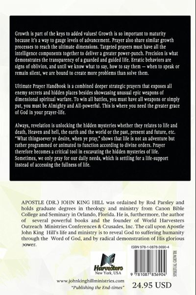 Growth is part of the keys to added values! Growth is so important to maturity because it’s a way to gauge levels of advancement. Prayer also share similar growth processes to reach the ultimate dimensions. Targeted prayers must have all the intelligence components together to deliver a greater power-punch. Precision is what demonstrates the transparency of a guarded and guided life. Erratic behaviors are signs of oblivion, and until we know what to say, how to say them — when to speak or remain silent, we are bound to create more problems than solve them. Ultimate Prayer Handbook is a combined deeper strategic prayers that exposes all enemy secrets and hidden places besides showcasing unusual epic weapons of dimensional spiritual warfare. To win all battles, you must have all weapons or simply put, you must be Almighty and All-powerful. This is where you need the greater grace of God in your prayer-life. Always, revelation is unlocking the hidden mysteries whether they relates to life and death, Heaven and hell, the earth and the world or the past, present and future, etc. "What thingsoever ye desire, when ye pray," shows that life is not an adventure but rather programmed or animated to function according to divine orders. Prayer therefore becomes a critical tool in excavating the hidden mysteries of life. Sometimes, we only pray for our daily needs, which is settling for a life-support instead of accessing the fullness of life.