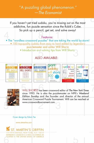 If you haven't yet tried sudoku, you're missing out on the most addictive, fun puzzle sensation since the Rubik's Cube. So pick up a pencil, get set, and solve away! Features: - The "wordless crossword puzzles" that are taking the world by storm! - 100 top-quality sudoku from easy to hard edited by Will Shortz - Introduction and solving tips from legendary puzzlemaster and editor Will Shortz