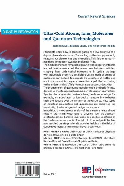 Physicists know how to produce gases at a few billionths of a degree above absolute zero. The cooling methods apply not only to atoms but also to ions and molecules. This field of research has three times been awarded the Nobel Prize. The field experienced remarkable growth when experimentalists learned how to vary at will the interactions between particles, trapping them with optical tweezers or in optical gratings with adjustable geometry. Artificial crystals made of atoms or molecules can be built to simulate the structure of matter and elucidate some of its magnetic properties, hopefully contributing to the understanding of high-temperature superconductivity. The phenomenon of quantum entanglement is the basis for new devices for the storage and transmission of quantum information. Spectacular progress is constantly being made in metrology. For example, ultra-cold atom or ion clocks measure time to better than one second over the lifetime of the Universe. New types of industrial gravimeters and gyroscopes are improving the sensitivity of seismology and navigation in space. In addition, the extreme precision of the measurements allows tests of the fundamental laws of physics, such as quantum electrodynamics, Lorentz invariance or possible variations of the fundamental constants. The field of ultra-cold particles has now reached the stage where it provides insights in the fields of condensed matter, chemistry and even cosmology.