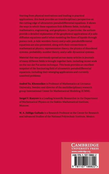 Starting from physical motivations and leading to practical applications, this book provides an interdisciplinary perspective on the cutting edge of ultrametric pseudodifferential equations. It shows the ways in which these equations link different fields including mathematics, engineering, and geophysics. In particular, the authors provide a detailed explanation of the geophysical applications of p-adic diffusion equations, useful when modeling the flows of liquids through porous rock. p-adic wavelets theory and p-adic pseudodifferential equations are also presented, along with their connections to mathematical physics, representation theory, the physics of disordered systems, probability, number theory, and p-adic dynamical systems. Material that was previously spread across many articles in journals of many different fields is brought together here, including recent work on the van der Put series technique. This book provides an excellent snapshot of the fascinating field of ultrametric pseudodifferential equations, including their emerging applications and currently unsolved problems.