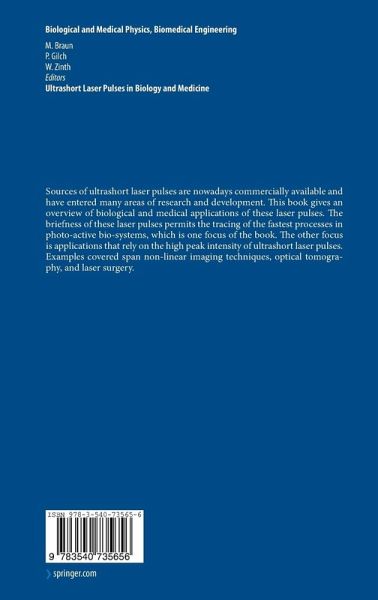 Learn about the many biological and medical applications of ultrashort laser pulses. The authors highlight and explain how the briefness of these laser pulses permits the tracing of even the fastest processes in photo-active bio-systems. They also present a variety of applications that rely on the high peak intensity of ultrashort laser pulses. Easy-to-follow examples cover non-linear imaging techniques, optical tomography, and laser surgery.Sources of ultrashort laser pulses are nowadays commercially available and have entered many areas of research and development. This book gives an overview of biological and medical applications of these laser pulses. The briefness of these laser pulses permits the tracing of the fastest processes in photo-active bio-systems, which is one focus of the book. The other focus is applications that rely on the high peak intensity of ultrashort laser pulses. Examples covered span non-linear imaging techniques, optical tomography, and laser surgery.