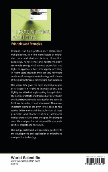 Demands for high-performance micro/nano manipulations, from the manufacture of microelectronic and photonic devices, biomedical apparatus, nanoscience and nanotechnology, renewable energy, environment protection, and high-end appliances, have been rapidly increasing in recent years. However, there are very few books on ultrasonic manipulation technology, which is one of the important means in micro/nano manipulations. This unique title gives the basic physical principles of ultrasonic micro/nano manipulations, and highlights methods of implementing these principles. The nonlinear effects of ultrasound are described in details after piezoelectric transduction and acoustic field are introduced and discussed. Numerous important examples are given in this book, to help readers better understand the applications of these principles and characteristics of ultrasonic manipulators utilizing these principles. The examples cover the manipulations of micro solids, nanoscale entities, droplets and microfluid. This indispensable book will contribute positively to the development and application of micro/nano manipulation technology.