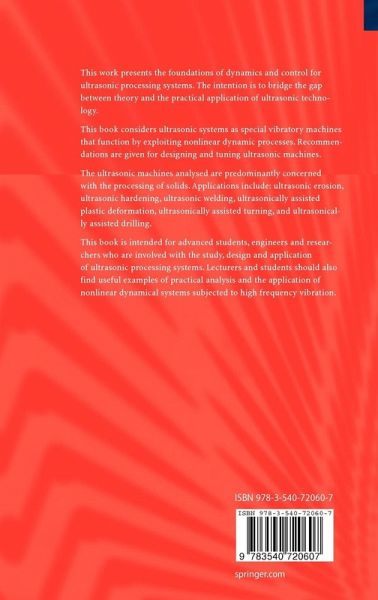 I don't mind your thinking slowly, I mind your publishing faster than you think. Wolfgang Pauli (1900-1958) Technologies that use high frequency (ultrasonic) vibration to intensify processes are gaining wide recognition in scienti?c and industrial envir- ments. By superimposing high frequency vibration, the basic mechanical - haviour of many processesand materialsis seen to be transformed.This leads to the developmentof newmachines and processeswith advancedcharacter- tics. Despite the fact that ultrasonic technology has been employed for many years, there is no generalised understanding of ultrasonic machines and p- cesses.Theirdesignanddevelopmenthasmainlybeenachievedusingheuristic methods based on linear acoustical considerations. This book is intended to bridge the gap between the theory and prac- cal use of ultrasonic technology. It presents generalised foundations for the dynamics and control of ultrasonic processing systems. The main concept presented is to consider ultrasonic systems as special kinds of vibratory - chines that function by exploiting nonlinear dynamic processes. This assumes coupled considerations between the ultrasonic vibration's in?uence on the processes, and the consequence of the transformed processing loads on the excitation and control of the working tools' vibration. Analysis is conducted in a uni?ed manner and is based on structural and frequency methods that have become well established in engineering practice. These methods are adjusted by the authors for the application to nonlinear ultrasonic systems.