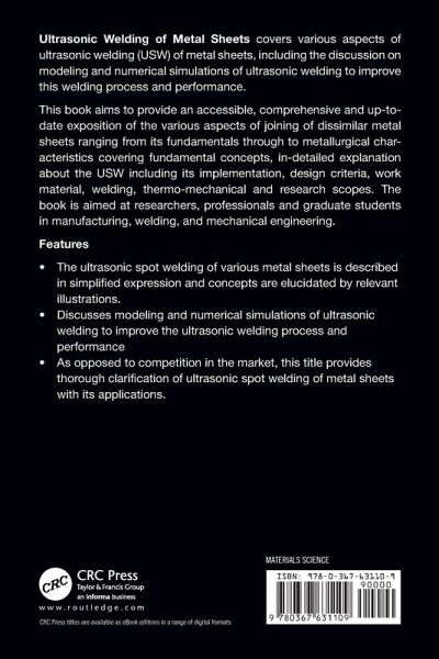 This book aims to provide an accessible, and up-to-date exposition of the various aspects of joining of dissimilar metal sheets ranging from its fundamentals thorough to metallurgical characteristics covering fundamental concepts, in-detailed explanation about the USW including its implementation, welding, thermo-mechanical etc.