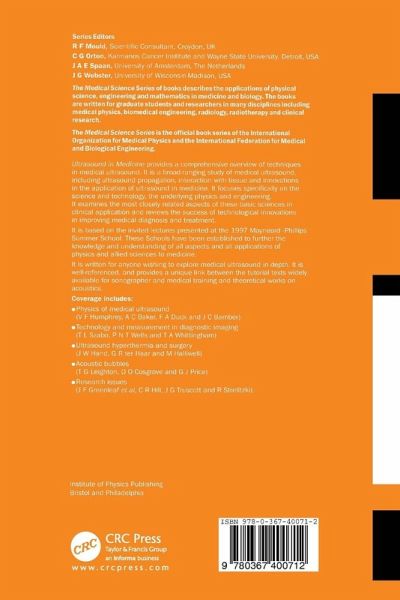 Ultrasound in Medicine is a broad-ranging study of medical ultrasound, including ultrasound propagation, interaction with tissue, and innovations in the application of ultrasound in medicine. The book focuses specifically on the science and technology-the underlying physics and engineering. It examines the most closely related aspects of these basic sciences in clinical application and reviews the success of technological innovations in improving medical diagnosis and treatment. The book bridges the gap between tutorial texts widely available for ultrasound and medical training and theoretical works on acoustics.…mehr
