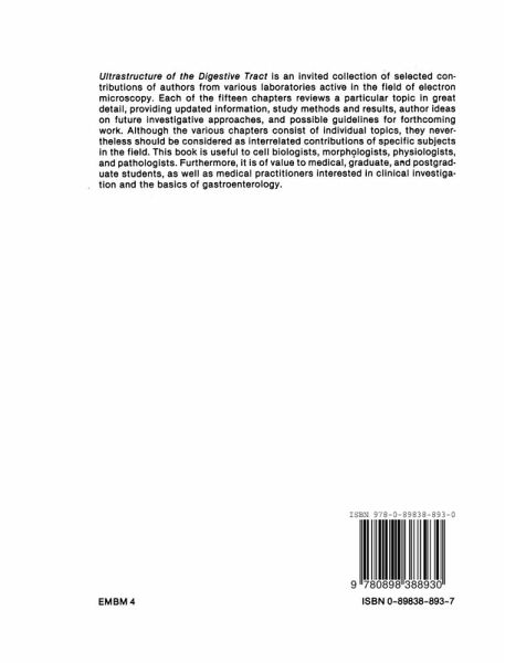 When established four years ago, the scope of this international series in electron microscopy essentially was to provide an opportunity for the pUblication of selected review contributions by specialists in ultrastructural research. Previous volumes presented over the last three years have focused on special topics of present interest in ~'ontemporary biomedicine such as endocrine cells, reproduction, and connective tissues. In these fielCls, in fact, integrated methods of electron microscopy have contributed much to generate new ideas and concepts of general value in both basic and clinical applications. The Ultrastructure of the Digestive Tract basically follows the same guidelines and style of the other books in the series and is an invited collection of selected contributions of authors from various laboratories active in the field of electron microscopy. Therefore, although the various chapters consist of individual topics, they nevertheless should be considered as interrelated contributions of specific subjects in the field. The idea was to have critical reviews of aspects previously published elsewhere by experts in the field who, as a rule, include other relevant information in their articles in order to update and enrich the subject. This book contains fifteen chapters by renowned electron microscopists. Each chapter, according to the policy of the editors, reviews a particular topic in great detail, providing updated information, study methods and results, authors' ideas on future investigative approaches, and possible guidelines for forthcoming work. We hope that this book will be useful to cell biologists, morphologists, physiologists, and pathologists.