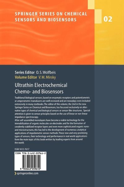 Traditional biological sensors, based on enzymatic receptors and potentiometric or amperometric transducers are well reviewed and are nowadays even included extensively in many textbooks. The editors of this volume, the 2nd in the new Springer Series on Chemical and Biosensors, have focussed exclusively on alternative types of chemical and biological sensors or sensor-like structures. Special attention is given to sensor principles based on the use of linear or non-linear impedance spectroscopy.After self-assembled monolayers have become a viable technology for the immobilization of organic molecules on electrodes and for the formation of covalently stabilized receptor layers and even more sophisticated organic nano- and microstructures, this has led to the development of numerous analytical applications of impedometric sensor methods. These new and very promising types of sensors, their technology and performance in real world applications form the main topic of this book written by leading experts from around the world.
