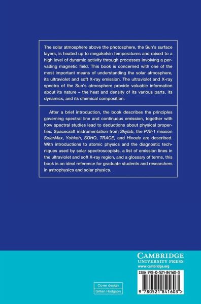 The solar atmosphere, above the Sun's surface layers, reaches mega-kelvin temperatures and high levels of dynamic activity through processes involving a pervading magnetic field. This book explores one of the principal means of understanding the solar atmosphere, its ultraviolet and soft X-ray emission. The ultraviolet and X-ray spectra of the Sun's atmosphere provide valuable information about its nature - the heat and density of its various parts, its dynamics, and chemical composition. The principles governing spectral line and continuous emission, and how spectral studies lead to deductions about physical properties, are described, together with spacecraft instrumentation from Skylab, SolarMax, Yohkoh, SOHO, TRACE, and Hinode. With introductions to atomic physics and diagnostic techniques used by solar spectroscopists, a list of emission lines in ultraviolet and soft X-ray regions, and a glossary of terms, this is an ideal reference for graduate students and researchers in astrophysics and solar physics.