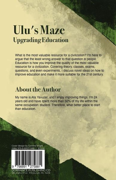 About the Book What is the most valuable resource for a civilization? I'm here to argue that the least wrong answer to that question is people. Education is how you improve the quality of the most valuable resource for a civilization. Covering theory, classes, exams, questions, and even experiments, I discuss novel ideas on how to improve education and make it more suitable for the 21st century. About the Author My name is Ata Yavuzer, and I enjoy improving things. I'm 24 years old and have spent more than 50% of my life within the same occupation: student. Therefore, what better place to start than education.