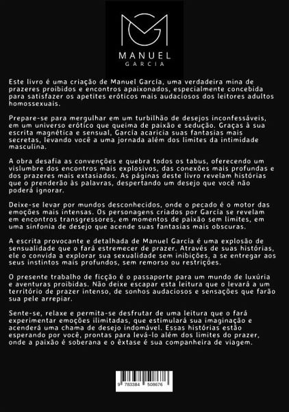 Este livro é uma criação de Manuel García, uma verdadeira mina de prazeres proibidos e encontros apaixonados, especialmente concebida para satisfazer os apetites eróticos mais audaciosos dos leitores adultos homossexuais.Prepare-se para mergulhar em um turbilhão de desejos inconfessáveis, em um universo erótico que queima de paixão e sedução. Graças à sua escrita magnética e sensual, García acaricia suas fantasias mais secretas, levando você a uma jornada além dos limites da intimidade masculina.A obra desafia as convenções e quebra todos os tabus, oferecendo um vislumbre dos encontros mais explosivos, das conexões mais profundas e dos prazeres mais extasiados. As páginas deste livro revelam histórias que o prenderão às palavras, despertando um desejo que você não poderá ignorar.Deixe-se levar por mundos desconhecidos, onde o pecado é o motor das emoções mais intensas. Os personagens criados por García se revelam em encontros transgressores, em momentos de paixão sem limites, em uma sinfonia de desejo que acende suas fantasias mais obscuras.A escrita provocante e detalhada de Manuel García é uma explosão de sensualidade que o fará estremecer de prazer. Através de suas histórias, ele o convida a explorar sua sexualidade sem inibições, a se entregar aos seus instintos mais profundos, sem remorso ou restrições.O presente trabalho de ficção é o passaporte para um mundo de luxúria e aventuras proibidas. Não deixe escapar esta leitura que o levará a um território de prazer intenso, de sonhos audaciosos e sensações que farão sua pele arrepiar.Sente-se, relaxe e permita-se desfrutar de uma leitura que o fará experimentar emoções ilimitadas, que estimulará sua imaginação e acenderá uma chama de desejo indomável. Essas histórias estão esperando por você, prontas para levá-lo além dos limites do prazer, onde a paixão é soberana e o êxtase é sua companheira de viagem.