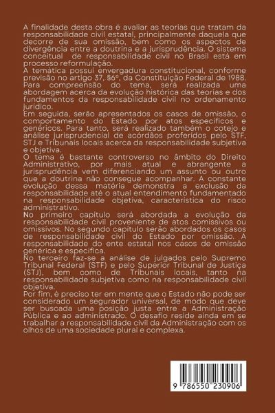 A finalidade desta obra é avaliar as teorias que tratam da responsabilidade civil estatal, principalmente daquela que decorre de sua omissão, bem como