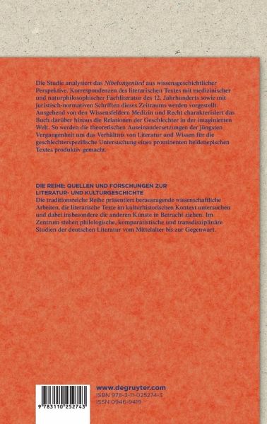 Die Studie analysiert das Nibelungenlied aus wissenspoetologischer Perspektive. Sie fragt nach dem Verhältnis der Geschlechter in der nibelungischen Welt vor dem Hintergrund unterschiedlicher historisch-zeitgenössischer Wissensgebiete. Korrespondenzen des literarischen Textes mit medizinischer und naturphilosophischer Fachliteratur sowie mit juristisch-normativen Schriften, die im 12. und frühen 13. Jahrhundert entstanden sind, werden untersucht. Durch die Konfrontation der unterschiedlichen Schriftzeugnisse und mit Hilfe von close readings werden Übereinstimmungen und Differenzen hinsichtlich Themen, Denkfiguren und Problemkonstellationen sowie ihrer Darstellungsmodi herausgearbeitet. Dabei zeigt sich die besondere Art und Weise, in der der literarische Text Wissen präsentiert. Ausgehend von den Wissensfeldern Medizin und Recht lassen sich darüber hinaus die Relationen der Geschlechter in der imaginierten Welt detailliert charakterisieren. So werden theoretische Auseinandersetzungen der jüngsten Vergangenheit mit dem Verhältnis von Literatur und Wissen für die geschlechterspezifische Untersuchung eines prominenten heldenepischen Textes produktiv gemacht.