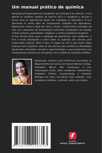 Destinado principalmente aos estudantes de licenciatura em ciências, o livro aborda os aspectos práticos da química física e inorgânica e discute a forma como as experiências devem ser realizadas no laboratório. O livro apresenta os vários tipos de componentes utilizados nos laboratórios. Experiências sobre a regra das fases, críticas. Caraterísticas principais voz Viva voz e perguntas de autoavaliação praticadas temperatura da solução, cinética química, propriedades coligativas e análise qualitativa inorgânica. O livro fornece dicas para a realização de experiências sem problemas, o livro é muito abrangente e cobre todos os aspectos dos cálculos para preparações práticas feitas é fácil. O slogan do livro é que foram feitos esforços para simplificar cada um dos passos para resolver as dificuldades geralmente enfrentadas durante a experimentação, o que proporciona uma compreensão profunda aos estudantes com o hábito do raciocínio científico.