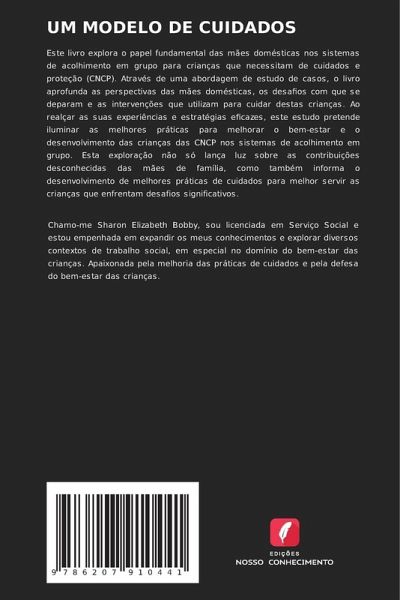 Este livro explora o papel fundamental das mães domésticas nos sistemas de acolhimento em grupo para crianças que necessitam de cuidados e proteção (CNCP). Através de uma abordagem de estudo de casos, o livro aprofunda as perspectivas das mães domésticas, os desafios com que se deparam e as intervenções que utilizam para cuidar destas crianças. Ao realçar as suas experiências e estratégias eficazes, este estudo pretende iluminar as melhores práticas para melhorar o bem-estar e o desenvolvimento das crianças das CNCP nos sistemas de acolhimento em grupo. Esta exploração não só lança luz sobre as contribuições desconhecidas das mães de família, como também informa o desenvolvimento de melhores práticas de cuidados para melhor servir as crianças que enfrentam desafios significativos.