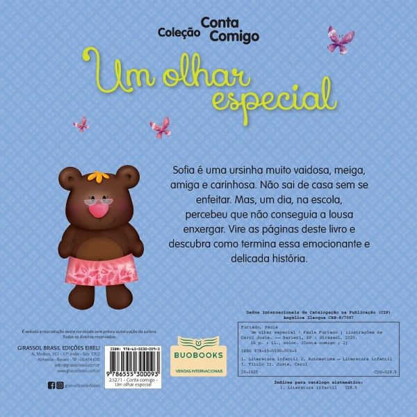 Sofia é uma ursinha muito vaidosa, meiga, amiga e carinhosa. Não sai de casa sem se enfeitar. Mas, um dia, na escola, percebeu que não conseguia a lousa enxergar. Vire as páginas deste livro e descubra como termina essa emocionante e delicada história.