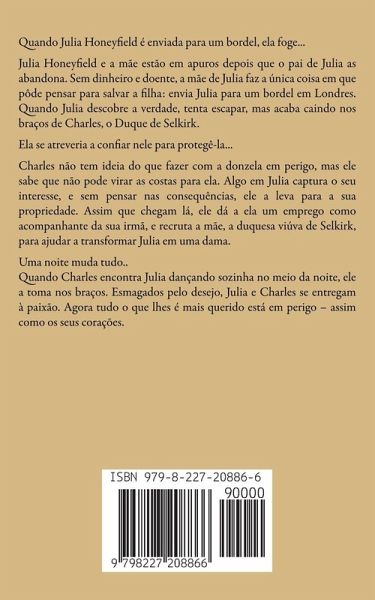 Quando Julia Honeyfield é enviada para um bordel, ela foge... Julia Honeyfield e a mãe estão em apuros depois que o pai de Julia as abandona. Sem dinheiro e doente, a mãe de Julia faz a única coisa em que pôde pensar para salvar a filha: envia Julia para um bordel em Londres. Quando Julia descobre a verdade, tenta escapar, mas acaba caindo nos braços de Charles, o Duque de Selkirk. Ela se atreveria a confiar nele para protegê-la... Charles não tem ideia do que fazer com a donzela em perigo, mas ele sabe que não pode virar as costas para ela. Algo em Julia captura o seu interesse, e sem pensar nas consequências, ele a leva para a sua propriedade. Assim que chegam lá, ele dá a ela um emprego como acompanhante da sua irmã, e recruta a mãe, a duquesa viúva de Selkirk, para ajudar a transformar Julia em uma dama. Uma noite muda tudo.. Quando Charles encontra Julia dançando sozinha no meio da noite, ele a toma nos braços. Esmagados pelo desejo, Julia e Charles se entregam à paixão. Agora tudo o que lhes é mais querido está em perigo - assim como os seus corações.