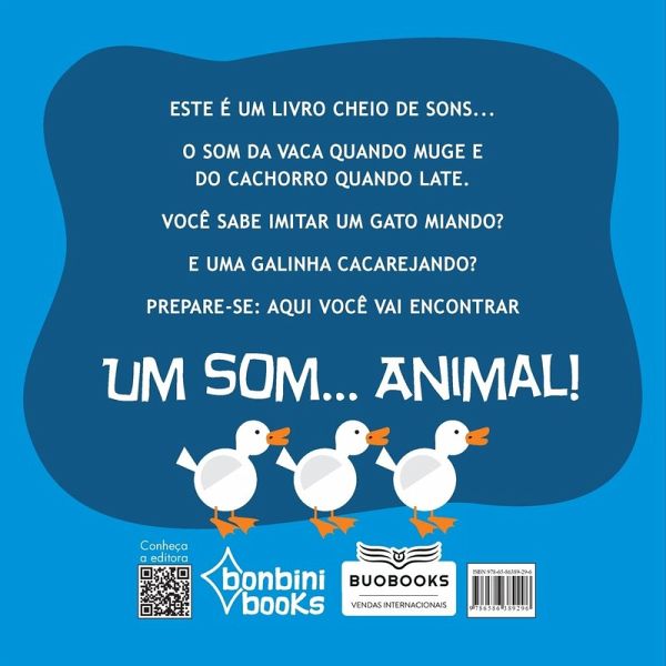 "Você já sabe qual é o som da vaca quando muge e do cachorro quando late, não é mesmo? Mas você sabe imitar um gato ronronando? E uma galinha cacarejando? Que tal se tornar fera nos sons que os animais domésticos fazem? Descobrir o som dos animais é sempre um prazer para a criança.Nesta obra, a originalidade está na diversidade dos animais apresentados e dos sons que eles fazem, cujos registros escritos fazem parte do trabalho literário da autora, Aloma, especializada em literatura infantil e no livro para criança.O livro destaca-se também, além do som real dos animais, o nome desse som, ampliando o vocabulário da criança. Afinal, todo mundo sabe que o gato mia e a vaca muge, mas você sabia que o pato grasna? Leitura, informação e entretenimento reunidos em um único livro.E tem mais, o nosso pequeno leitor pode acessar o som verdadeiro dos animais do livro no canal do Youtube da Editora Bamboozinho, tornando a experiência de leitura ainda mais divertida!Este livro recebeu o selo Aqui tem natureza, que indica que a obra valoriza o nosso orgulho e sentimento de pertencimento à natureza. Ele tem a função de nos apresentar e admirar as riquezas naturais do nosso planeta e, também, conscientizar ainda mais o leitor para a necessidade de proteger a cada bichinho que aqui vive e o seu habitat, as praças, bosques, matas e florestas do mundo todo. Sinta o ar puro, ouça o som dos animais e se encante com a diversidade de cores, cheiros e formas que a natureza tem para mostrar. A Bamboozinho traz tudo isso para você na forma de livro infantil, cuidadosamente elaborado para que as crianças se percebam como parte de algo maior e cresçam com o sentimento de respeito e cuidado em relação ao ambiente! Conheça os demais títulos da Coleção Um Som Animal: "Animais brasileiros", "Animais da África" e "Animais do nosso entorno".Este livro é editado e comercializado no Brasil pela Editora Bamboozinho e internacionalmente pelo selo Bon Bini Books. Para vendas fora do Brasil consulte o nosso site: www.bamboozinho.com.br. "
