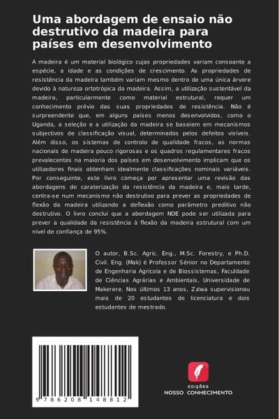 A madeira é um material biológico cujas propriedades variam consoante a espécie, a idade e as condições de crescimento. As propriedades de resistência da madeira também variam mesmo dentro de uma única árvore devido à natureza ortotrópica da madeira. Assim, a utilização sustentável da madeira, particularmente como material estrutural, requer um conhecimento prévio das suas propriedades de resistência. Não é surpreendente que, em alguns países menos desenvolvidos, como o Uganda, a seleção e a utilização da madeira se baseiem em mecanismos subjectivos de classificação visual, determinados pelos defeitos visíveis. Além disso, os sistemas de controlo de qualidade fracos, as normas nacionais de madeira pouco rigorosas e os quadros regulamentares fracos prevalecentes na maioria dos países em desenvolvimento implicam que os utilizadores finais obtenham idealmente classificações nominais variáveis. Por conseguinte, este livro começa por apresentar uma revisão das abordagens de caraterização da resistência da madeira e, mais tarde, centra-se num mecanismo não destrutivo para prever as propriedades de flexão da madeira utilizando a deflexão como parâmetro preditivo não destrutivo. O livro conclui que a abordagem NDE pode ser utilizada para prever a qualidade da resistência à flexão da madeira estrutural com um nível de confiança de 95%.