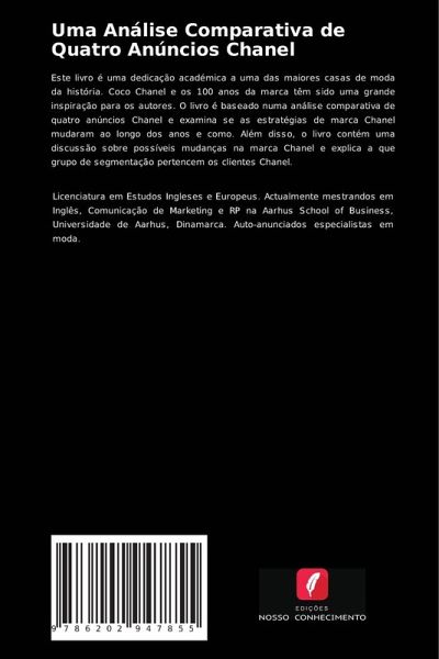 Este livro é uma dedicação académica a uma das maiores casas de moda da história. Coco Chanel e os 100 anos da marca têm sido uma grande inspiração para os autores. O livro é baseado numa análise comparativa de quatro anúncios Chanel e examina se as estratégias de marca Chanel mudaram ao longo dos anos e como. Além disso, o livro contém uma discussão sobre possíveis mudanças na marca Chanel e explica a que grupo de segmentação pertencem os clientes Chanel.