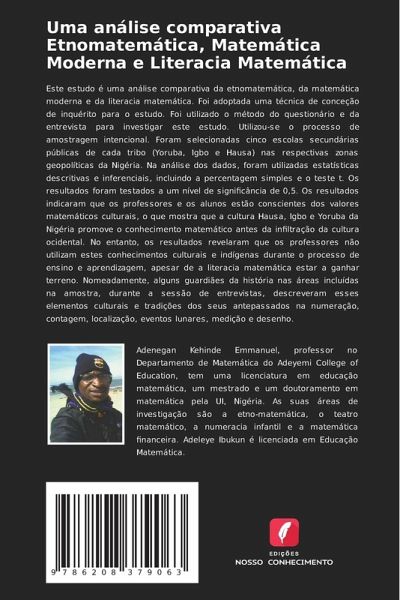 Este estudo é uma análise comparativa da etnomatemática, da matemática moderna e da literacia matemática. Foi adoptada uma técnica de conceção de inquérito para o estudo. Foi utilizado o método do questionário e da entrevista para investigar este estudo. Utilizou-se o processo de amostragem intencional. Foram selecionadas cinco escolas secundárias públicas de cada tribo (Yoruba, Igbo e Hausa) nas respectivas zonas geopolíticas da Nigéria. Na análise dos dados, foram utilizadas estatísticas descritivas e inferenciais, incluindo a percentagem simples e o teste t. Os resultados foram testados a um nível de significância de 0,5. Os resultados indicaram que os professores e os alunos estão conscientes dos valores matemáticos culturais, o que mostra que a cultura Hausa, Igbo e Yoruba da Nigéria promove o conhecimento matemático antes da infiltração da cultura ocidental. No entanto, os resultados revelaram que os professores não utilizam estes conhecimentos culturais e indígenas durante o processo de ensino e aprendizagem, apesar de a literacia matemática estar a ganhar terreno. Nomeadamente, alguns guardiães da história nas áreas incluídas na amostra, durante a sessão de entrevistas, descreveram esses elementos culturais e tradições dos seus antepassados na numeração, contagem, localização, eventos lunares, medição e desenho.