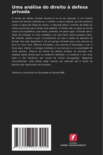 O direito de defesa privada baseia-se na lei da natureza. É um instinto natural do homem defender-se e manter a posse daquilo que lhe pertence contra a agressão ilegal de outros. A natureza dotou o homem de todos os meios essenciais para atingir este objetivo. O direito não se opõe ao direito natural de autodefesa, que existe, portanto, em pleno vigor. O Estado tem o dever de proteger os seus cidadãos e os seus bens contra qualquer dano. No entanto, podem surgir circunstâncias em que a ajuda do aparelho de Estado não está disponível e há um perigo iminente para uma pessoa ou para os seus bens. Nessas situações, uma pessoa é autorizada a usar a força para afastar a ameaça imediata à sua pessoa ou à propriedade de outra pessoa. Trata-se do direito de defesa privada. As pessoas são dotadas deste direito para se poderem defender a si próprias e aos seus bens e não hesitarem por receio de serem perseguidas. Nalgumas circunstâncias, este direito pode mesmo ser exercido até à morte da pessoa que representa uma ameaça.