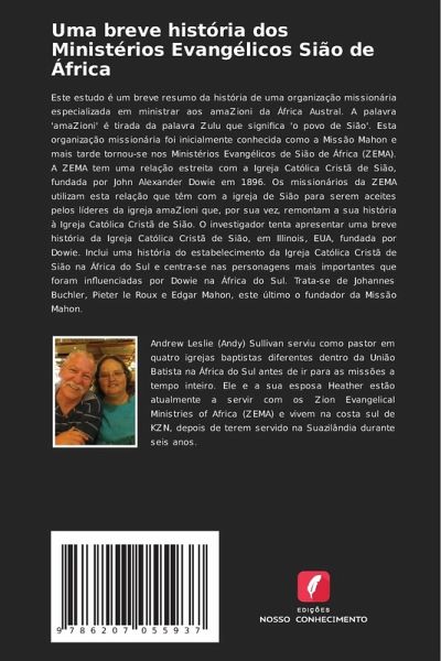 Este estudo é um breve resumo da história de uma organização missionária especializada em ministrar aos amaZioni da África Austral. A palavra 'amaZioni' é tirada da palavra Zulu que significa 'o povo de Sião'. Esta organização missionária foi inicialmente conhecida como a Missão Mahon e mais tarde tornou-se nos Ministérios Evangélicos de Sião de África (ZEMA). A ZEMA tem uma relação estreita com a Igreja Católica Cristã de Sião, fundada por John Alexander Dowie em 1896. Os missionários da ZEMA utilizam esta relação que têm com a igreja de Sião para serem aceites pelos líderes da igreja amaZioni que, por sua vez, remontam a sua história à Igreja Católica Cristã de Sião. O investigador tenta apresentar uma breve história da Igreja Católica Cristã de Sião, em Illinois, EUA, fundada por Dowie. Inclui uma história do estabelecimento da Igreja Católica Cristã de Sião na África do Sul e centra-se nas personagens mais importantes que foram influenciadas por Dowie na África do Sul. Trata-se de Johannes Buchler, Pieter le Roux e Edgar Mahon, este último o fundador da Missão Mahon.