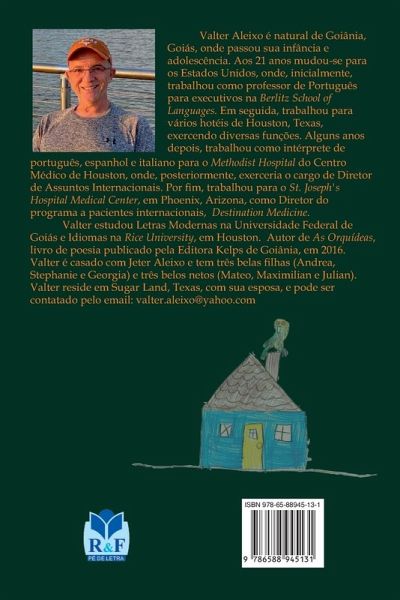 Valter Aleixo é natural de Goiânia, Goiás, onde passou sua infância e adolescência. Aos 21 anos mudou-se para os Estados Unidos, onde, inicialmente, trabalhou como professor de Português para executivos na Berlitz School of Languages. Em seguida, trabalhou para vários hotéis de Houston, Texas, exercendo diversas funções. Alguns anos depois, trabalhou como intérprete de português, espanhol e italiano para o Methodist Hospital do Centro Médico de Houston, onde, posteriormente, exerceria o cargo de Diretor de Assuntos Internacionais. Por fim, trabalhou para o St. Joseph's Hospital Medical Center, em Phoenix, Arizona, como Diretor do programa a pacientes internacionais, Destination Medicine. Valter estudou Letras Modernas na Universidade Federal de Goiás e Idiomas na Rice University, em Houston. Autor de As Orquídeas, livro de poesia publicado em 2016. Valter é casado com Jeter Aleixo e tem três belas filhas (Andrea, Stephanie e Georgia) e três belos netos (Mateo, Maximilian e Julian). Valter reside em Sugar Land, Texas, com sua esposa, e pode ser contatado pelo email: valter.aleixo@yahoo.com