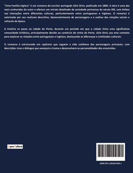 Uma Família Inglesa, de Júlio Dinis, transporta o leitor para a vibrante cidade do Porto no século XIX, onde a vida social e cultural fervilha em meio a transformações econômicas e sociais. A narrativa centra-se na história de Carlos Whitestone, um jovem inglês que se muda para Portugal para trabalhar na empresa de seu tio. Através de Carlos, o leitor é introduzido a uma sociedade em transição, onde as tradições locais se entrelaçam com influências estrangeiras, refletindo as complexidades de uma época de mudança. O romance explora temas de identidade cultural e pertencimento, enquanto Carlos navega pelas nuances de sua nova vida, dividida entre as expectativas de sua família inglesa e as novas amizades e amores que encontra em solo português. A obra oferece uma análise detalhada das relações sociais e dos costumes da época, destacando as diferenças e semelhanças entre as culturas inglesa e portuguesa. Através de uma prosa envolvente, Júlio Dinis captura a essência de uma sociedade em evolução, onde o amor e a amizade são testados pelas barreiras culturais e pelas convenções sociais. O leitor é convidado a refletir sobre a importância da compreensão e da aceitação mútua em um mundo cada vez mais interconectado. Ao desenvolver personagens complexos e situações realistas, Uma Família Inglesa oferece uma visão perspicaz sobre as dinâmicas familiares e sociais do século XIX. Através das experiências de Carlos, o leitor é levado a considerar as questões de identidade e adaptação cultural, proporcionando uma leitura que é tanto um deleite literário quanto uma reflexão sobre a condição humana.