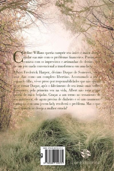 Caroline Willians queria cumprir seu único e maior desejo: ajudar sua mãe com os problemas financeiros. Porém, não contava com os imprevistos e artimanhas do destino que, de um jeito nada convencional, tornaram-na uma lady. Albert Frederick Harper, décimo Duque de Somerset, vivia seus dias como um completo libertino. Acostumado a ser o segundo filho, vê-se preso por responsabilidades que não queria ao se tornar Duque, após o falecimento de seu irmão mais velho. Entretanto, pela primeira vez na vida, Albert não teria o que queria de mãos beijadas. Graças a um termo no testamento de seu antecessor, ele agora precisa de dinheiro e só um casamento vantajoso com uma jovem lady resolverá o problema. Mas o que fazer quando se deseja a mulher errada?