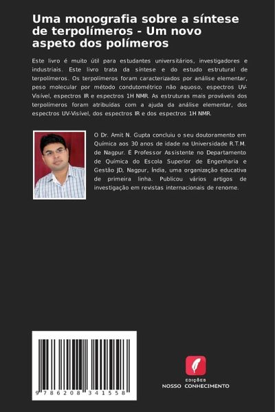 Este livro é muito útil para estudantes universitários, investigadores e industriais. Este livro trata da síntese e do estudo estrutural de terpolímeros. Os terpolímeros foram caracterizados por análise elementar, peso molecular por método condutométrico não aquoso, espectros UV-Visível, espectros IR e espectros 1H NMR. As estruturas mais prováveis dos terpolímeros foram atribuídas com a ajuda da análise elementar, dos espectros UV-Visível, dos espectros IR e dos espectros 1H NMR.