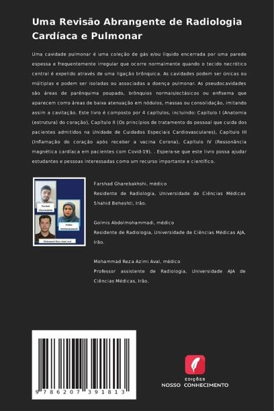 Uma cavidade pulmonar é uma coleção de gás e/ou líquido encerrada por uma parede espessa e frequentemente irregular que ocorre normalmente quando o tecido necrótico central é expelido através de uma ligação brônquica. As cavidades podem ser únicas ou múltiplas e podem ser isoladas ou associadas a doença pulmonar. As pseudocavidades são áreas de parênquima poupado, brônquios normais/ectásicos ou enfisema que aparecem como áreas de baixa atenuação em nódulos, massas ou consolidação, imitando assim a cavitação. Este livro é composto por 4 capítulos, incluindo: Capítulo I (Anatomia (estrutura) do coração), Capítulo II (Os princípios de tratamento do pessoal que cuida dos pacientes admitidos na Unidade de Cuidados Especiais Cardiovasculares), Capítulo III (Inflamação do coração após receber a vacina Corona), Capítulo IV (Ressonância magnética cardíaca em pacientes com Covid-19). . Espera-se que este livro possa ajudar estudantes e pessoas interessadas como um recurso importante e científico.