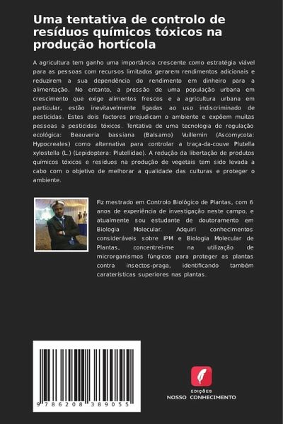 A agricultura tem ganho uma importância crescente como estratégia viável para as pessoas com recursos limitados gerarem rendimentos adicionais e reduzirem a sua dependência do rendimento em dinheiro para a alimentação. No entanto, a pressão de uma população urbana em crescimento que exige alimentos frescos e a agricultura urbana em particular, estão inevitavelmente ligadas ao uso indiscriminado de pesticidas. Estes dois factores prejudicam o ambiente e expõem muitas pessoas a pesticidas tóxicos. Tentativa de uma tecnologia de regulação ecológica: Beauveria bassiana (Balsamo) Vuillemin (Ascomycota: Hypocreales) como alternativa para controlar a traça-da-couve Plutella xylostella (L.) (Lepidoptera: Plutellidae). A redução da libertação de produtos químicos tóxicos e resíduos na produção de vegetais tem sido levada a cabo com o objetivo de melhorar a qualidade das culturas e proteger o ambiente.