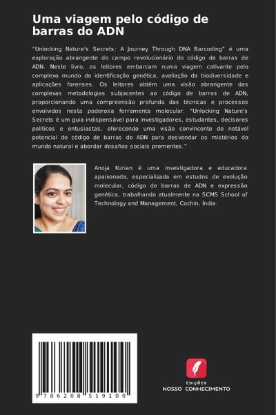 "Unlocking Nature's Secrets: A Journey Through DNA Barcoding" é uma exploração abrangente do campo revolucionário do código de barras de ADN. Neste livro, os leitores embarcam numa viagem cativante pelo complexo mundo da identificação genética, avaliação da biodiversidade e aplicações forenses. Os leitores obtêm uma visão abrangente das complexas metodologias subjacentes ao código de barras de ADN, proporcionando uma compreensão profunda das técnicas e processos envolvidos nesta poderosa ferramenta molecular. "Unlocking Nature's Secrets é um guia indispensável para investigadores, estudantes, decisores políticos e entusiastas, oferecendo uma visão convincente do notável potencial do código de barras do ADN para desvendar os mistérios do mundo natural e abordar desafios sociais prementes."